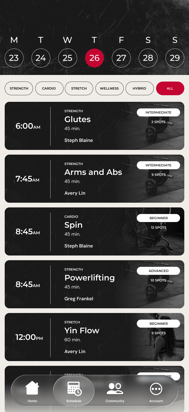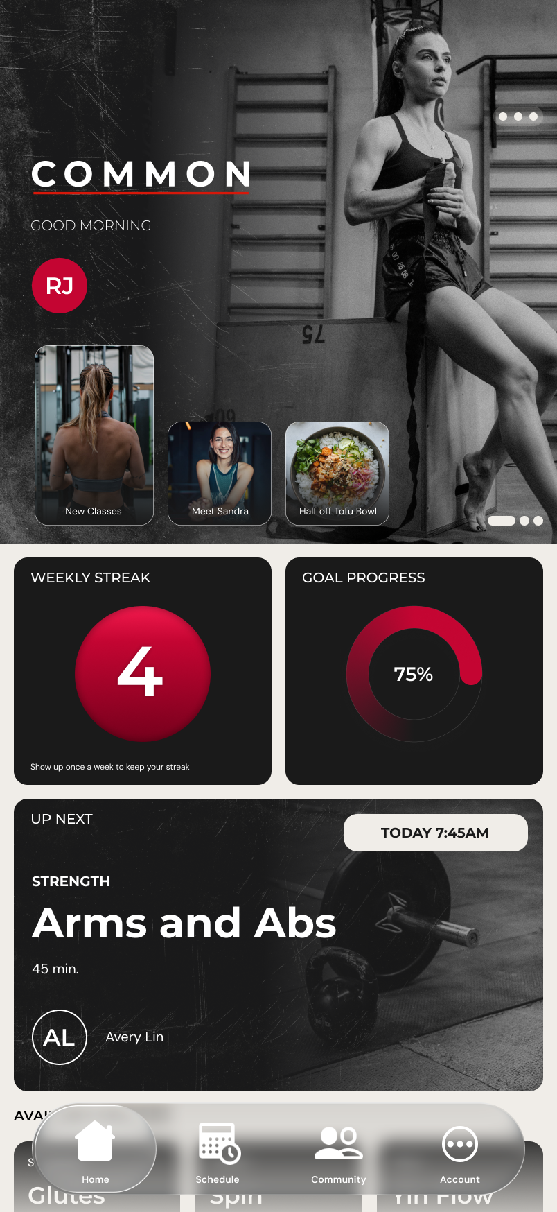 The app extends the brand system into a daily-use product — surfacing stats, enabling one-tap booking, and keeping members connected to coaches.
